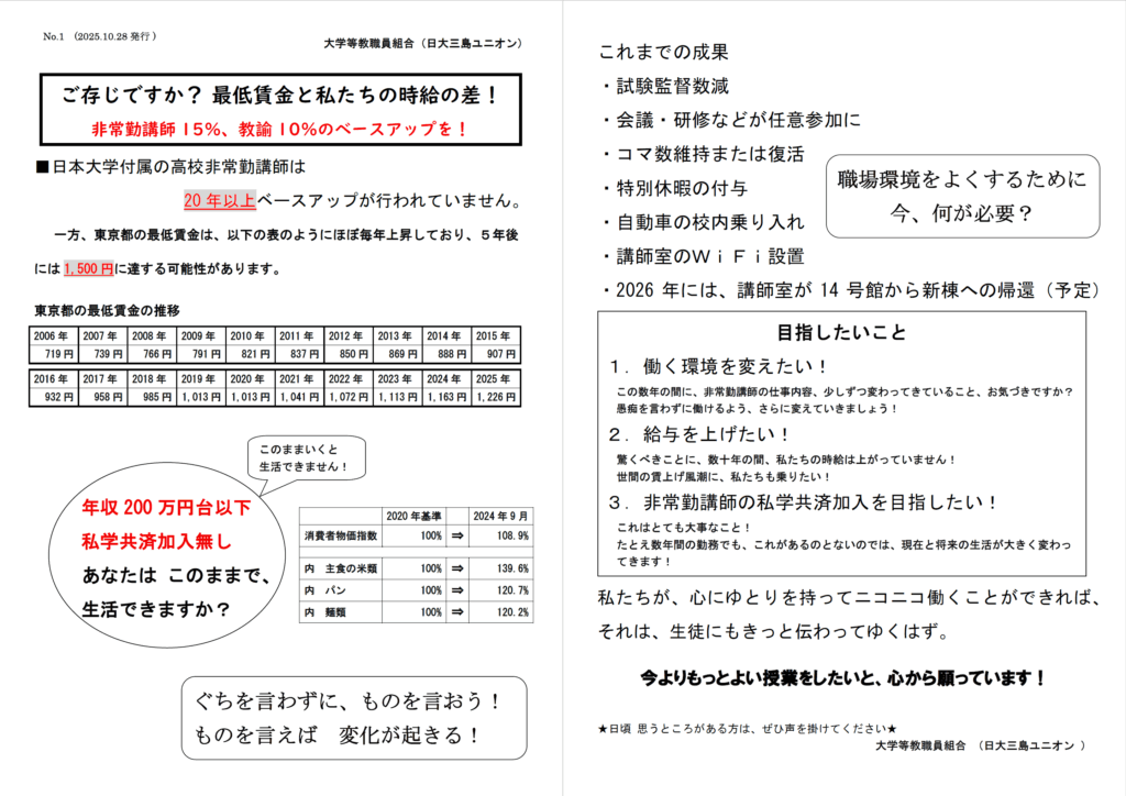 日大三島ストライキに関するチラシ(生徒向け)